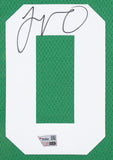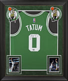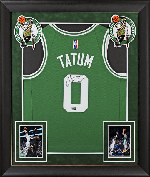 This Autographed Green Nike Swingman Framed Jersey has been Personally Signed by Jayson Tatum of the Boston Celtics. This item is 100% Authentic to includes a numbered hologram by Fanatics. We have multiples of this same item. While the photographs are representative of this item, the size, placement and strength of the signature may vary. Each item is hand signed, therefore, each autograph is unique. This jersey will be framed to order, it will take 3-4 days from purchase date for it to ship.