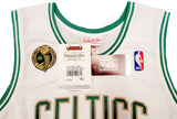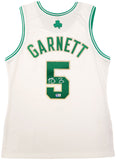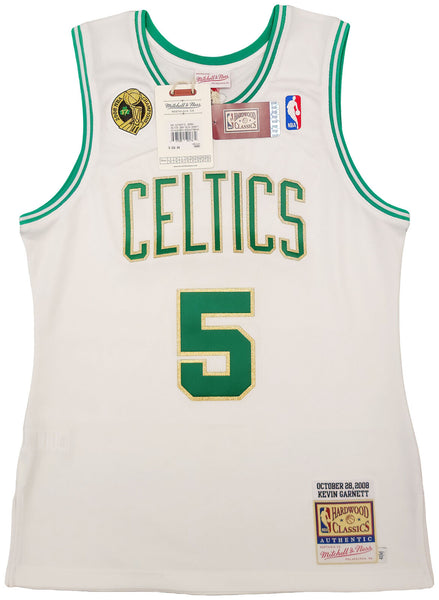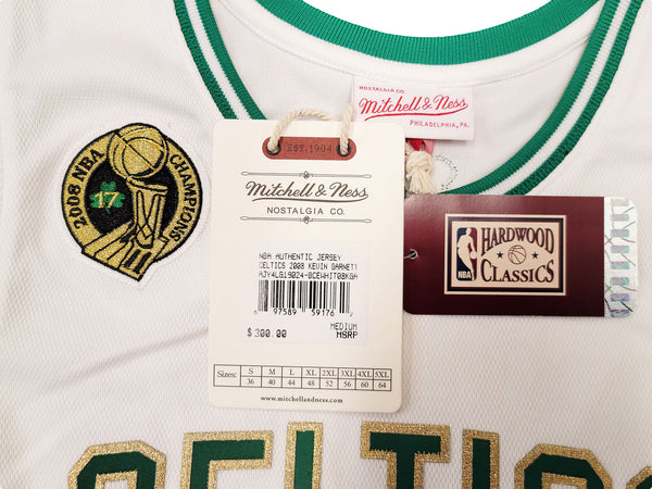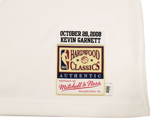 This is a White & Gold Authentic Mitchell & Ness Boston Celtics Hardwood Classics 2008 Jersey that has been hand signed by Kevin Garnett. This jersey is Size M. This item has been certified authentic by Beckett Authentication (BAS) and comes with their tamper-proof QR Code sticker that can be verified on the Beckett-authentication.com.