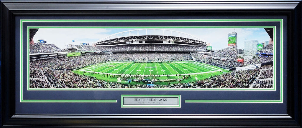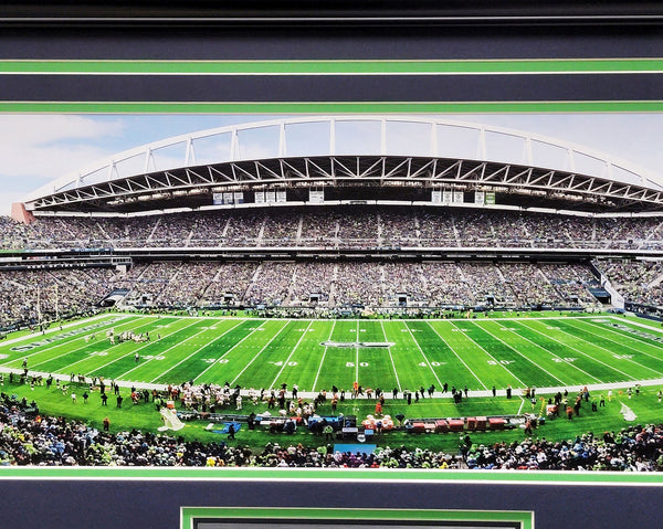 This is an unsigned Framed 12x36 Panoramic Photo, approximately 17.5x43 with the frame, of the Seattle Seahawks' stadium 'CenturyLink Field.'
