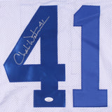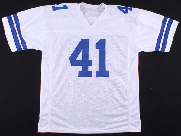 Custom on-field style jersey. Everything sewn on, size XL. Hand-signed in black felt-tip pen by Charlie Waters. The lot / autograph(s) includes an official James Spence Authentication (JSA) hologram and matching COA for authenticity purposes. The signing of this item was witnessed by JSA.Authentication: JSA COA