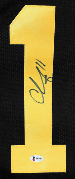 Chase Claypool Autographed Black Color Rush Pro Style Jersey-Beckett W*Black *L1 THIS IS NOT AN NFL JERSEY. THIS HAS NO TAGS, NO LOGOS, NO EMBLEMS. This is a Chase Claypool of the Pittsburgh Steelers hand autographed custom made (non name brand) authentic style (stitched letters and numbers) jersey. This item has a Beckett Witnessed Authentication, which comes with a numbered and a matching Beckett Certificate of Authenticity. You can view this item on the Beckett Authentication website. It was signed either at a public autograph appearance or a private signing. This is a stock photo of the item. Although you may not receive this exact item, the item you receive is virtually identical, brand new, and in great shape. Jersey size is XL.