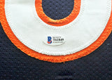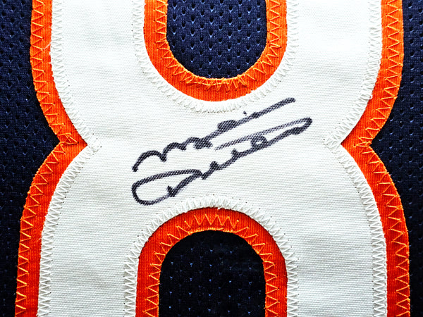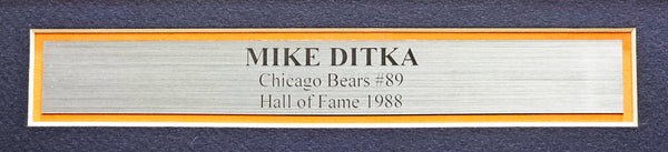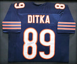 This is a framed Blue Jersey, approximately 31x36 with the frame, that has been hand signed by Mike Ditka. This is a custom jersey with no name brand. The approximate size is XL. It has nice sewn in name and numbers. This item has been certified authentic by Beckett Authentication (BAS) and comes with their tamper-proof sticker. Beckett Authentication has recently changed their physical certificate card policy where they no longer match their tamper-proof sticker with a physical certificate. If the item features a Beckett Authenticated QR Code, the item does NOT come with a matching certificate. A certificate can be printed on Beckett's website for the matching authentication number.