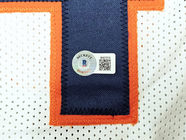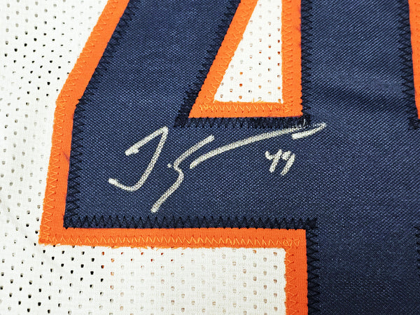 This is a White Jersey that has been hand signed by Tremaine Edmunds. This is a custom jersey with no name brand. The approximate size is XL. It has nice sewn in name and numbers. This item has been witnessed and certified authentic by Beckett Authentication (BAS) and comes with their tamper-proof witness sticker.
