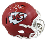 This Autographed Riddell Full Size Speed Rep Helmet W/ Uv Mirrored Back Acrylic Display Case has been Personally Signed by Derrick Johnson of the Kansas City Chiefs. This item is 100% Authentic to include a hologram by Beckett Authentication Services. This item will come with an affixed Beckett Authentication Services (BAS) authentication sticker, which includes a scannable QR code to verify authenticity. Please note that Beckett no longer provides serial-numbered COA cards, and the attached BAS sticker will serve as the complete authentication for this item. This is a BAS Witnessed Protection Program item which means a Beckett Authentication Service representative was present when this item was being signed. We conducted an autograph signing with Derrick Johnson where multiples of the same item were signed. While the photographs are representative of this item, the size, placement and strength of the signature may vary. Each item is hand signed, therefore, each autograph is unique. This item can be verified through BAS Witnessed.