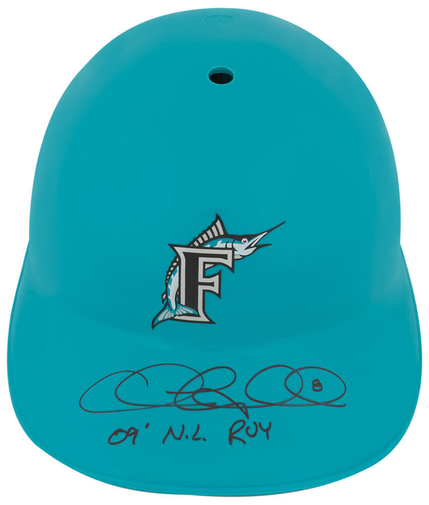 Chris Coghlan signed Florida Marlins souvenir replica batting helmet with '09 NL ROY' inscription. Item comes with a Schwartz Sports Memorabilia tamper-proof numbered hologram and Certificate of Authenticity which can be verified online.