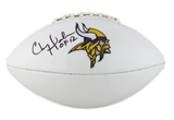 A Minnesota Vikings Embroidered NFL Football hand signed by Chris Doleman. The item and signature are in excellent condition. In addition to signing his name, Chris inscribed "HOF 12" on the item. Chris is an 8x Pro Bowler, 3x First Team All Pro, member of the NFL 1990's All-Decade Team and Minnesota Vikings Ring of Honor AUTHENTICATION: The item is accompanied by a Certificate of Authenticity - Serial Numbered & Databased Hologram - Photo of Chris from the Signing -