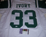 Custom on-field style jersey. Everything is sewn on, size XL. Hand-signed in silver felt-tip pen by Chris Ivory. The lot / autograph(s) includes an official James Spence Authentication (JSA) hologram and matching COA for authenticity purposes.Authentication: JSA COA