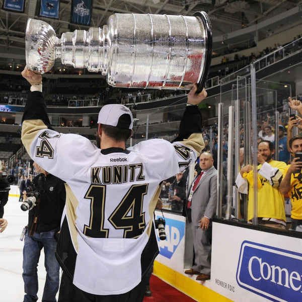 Custom on-ice style jersey. Everything is sewn on, size XL. Hand-signed in black felt tip pen by Chris Kunitz (Penguins).The autograph includes an official James Spence Authentication (JSA) hologram and matching COA for authenticity purposes. The signing of this item was witnessed by JSA.Authentication: JSA COA Shop our ebay store / Friendly Confines Collectibles for thousands of different autographed jerseys
