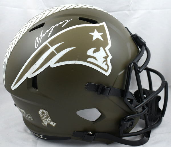 Christian Gonzalez Signed Patriots F/S Salute Speed Helmet - Beckett W Hologram