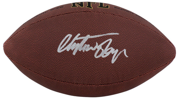 Christian Okoye signed Wilson Super Grip full size NFL football. Item comes with a Schwartz Sports Memorabilia tamper-proof numbered hologram and Certificate of Authenticity which can be verified online.