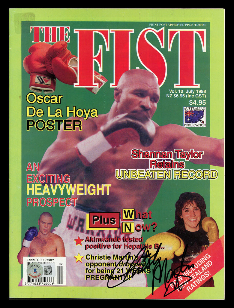 This is a The Fist Magazine that has been hand signed by Christy Martin. This item has been certified authentic by Beckett Authentication (BAS) and comes with their tamper-proof QR Code hologram that can be verified on the Beckett-authentication.com.