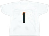 This is a White Jersey that has been hand signed by Ja'Marr Chase. This is a custom jersey with no name brand. The approximate size is XL. It has nice sewn in name and numbers. This item has been witnessed and certified authentic by Beckett Authentication (BAS) and comes with their tamper-proof witness sticker.