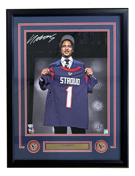 Featured is a CJ Stroud (Houston Texans) signed 16x20 photo. This photo has been hand signed by Stroud and comes with the Fanatics hologram and certificate of authenticity. This photo has been professionally framed and matted and is approximately 22x27. This photo would make a great addition to any sports memorabilia collection! SPECIFICATIONS Autographed By: CJ Stroud Team: Houston Texans Sport: Football Authentication: Fanatics Authentic