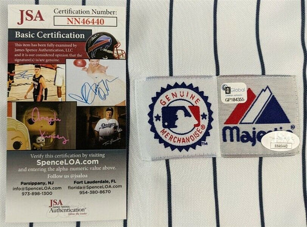 This autographed Majestic MLB jersey has been personally hand-signed by Clete Boyer ("Bronx Bombers" inscription) and Johnny Blanchard of the New York Yankees. Blanchard added the inscription "1961 Yankees" along with his signature. These autographs are certified by James Spence Authentication (JSA). The jersey comes with the numbered hologram and matching Certificate of Authenticity.