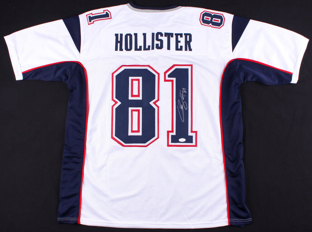 Custom on-field style jersey. Everything sewn on, size XL. Hand-signed in silver paint pen by Cody Hollister. His twin Brother Jacob is a back up Tight End for the Patriots. The lot / autograph(s) includes an official James Spence Authentication (JSA) hologram and matching COA for authenticity purposes. The signing of this item was witnessed by JSA.Authentication: JSA COA