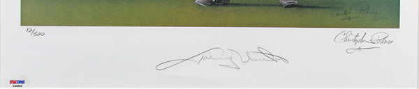 This Autographed Limited Edition #12/500 & Framed 18x24 Lithograph has been Personally Signed by Johnny Unitas & Christopher Paluso of the Baltimore Colts. This item is 100% Authentic to include a Certificate of Authenticity (COA) / hologram by Beckett Authentication Services. The authenticity can be verified on Beckett Authentication Services website. This item has been professionally framed to overall dimensions of approximately 26 x 30 inches.