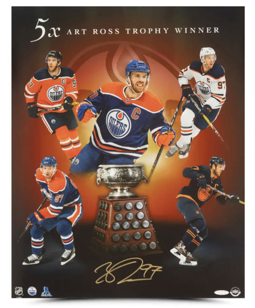 The 2022-2023 season was statistically the best of Connor McDavid's career. McDavid would play all 82 games of the season and put up a career high in goals (64), assists (89), and points (153). What was also significant was the fact that McDavid would win his third straight Art Ross Trophy (given to the NHL player who scores the most points in a season). McDavid scored an impressive 1.74 points per game in 218 contests during that span. The 2023-2024 season will be McDavid?S 9th in the NHL, already in his first 8 seasons he has won the Art Ross Trophy 5 times. The rate at which he is accumulating points is also mind blowing. On October 12, 2022 McDavid would tally his 700th career point, making him the 6th fastest player to ever do so. Only a few months later McDavid would notch his 800th career point, becoming the fifth fastest player ever to accomplish that feat. At just 27 years old Connor McDavid continues to reach milestones at a record pace.This image is autographed by Connor McDavid. McDavid's signature was witnessed by an Upper Deck representative as part of UDA's 5-step authentication process.If for any reason you are not completely satisfied with the quality or authenticity of your purchase, we will gladly give you a full refund or exchange, whichever you prefer up to 30 days after purchase.Please feel free to e-mail us with any questions.Thank you.Authenticator Pre-CertifiedAuthenticator: UD AuthenticatedHistory of item: Connor McDavid has personally signed this item in the presence of a UDA representative.Describe how you came to possess this item: Super Sports Center is a fully authorized dealer for Upper Deck Authenticated as well as Mounted Memories and Steiner Sports.Other information about you and / or the item: Super Sports Center strives to deliver the most authentic in sports memorabilia from trusted companies like Mounted Memories, Steiner Sports and Upper Deck Authenticated. If it exists, we can find it for you!