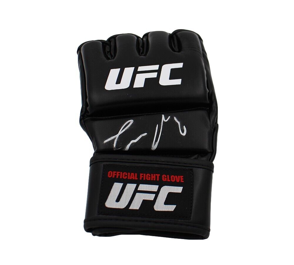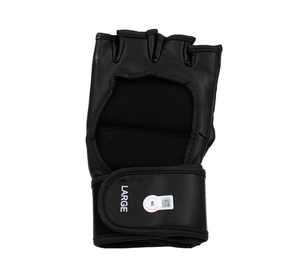 A Black UFC Glove hand signed by Conor McGregor. The item and signature are in excellent condition. Conor is a former Ultimate Fighting Championship Featherweight and Lightweight Champion, becoming the first UFC fighter to hold UFC championships in two weight classes simultaneously. AUTHENTICATION: The item is accompanied by a Beckett Serial Numbered and Databased Hologram.