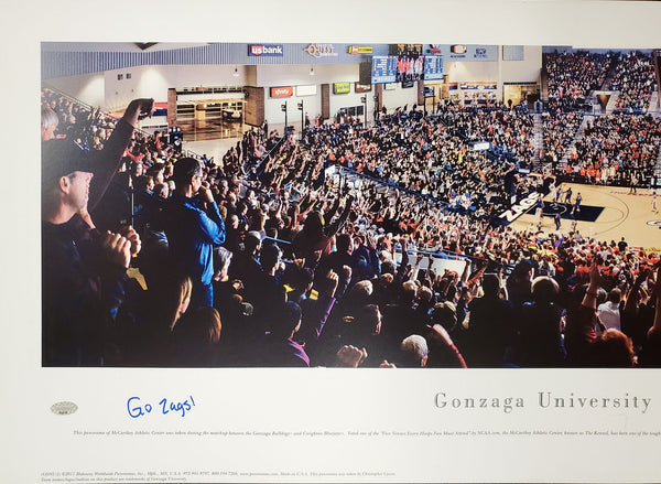 This is a Framed Panoramic Photo, approximately 17.5x43 with the frame, that has been hand signed by Corey Kispert. This item was inscribed "Go Zags!." This item was signed in the presence of a Mill Creek Sports representative and comes with their serial numbered hologram and matching certificate of authenticity.