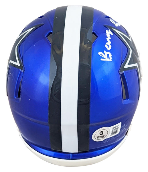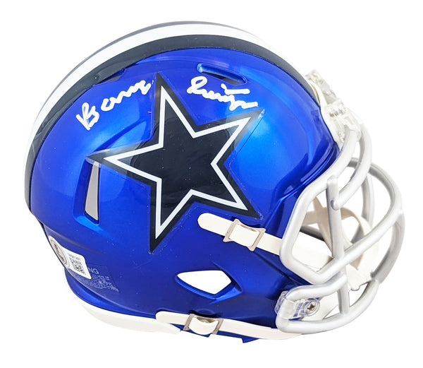 This Autographed Alternate Flash Speed Mini Helmet has been Personally Signed by Barry Switzer of the Dallas Cowboys. This item is 100% Authentic to include a hologram by Beckett Authentication Services. This item will come with an affixed Beckett Authentication Services (BAS) authentication sticker, which includes a scannable QR code to verify authenticity. Please note that Beckett no longer provides serial-numbered COA cards, and the attached BAS sticker will serve as the complete authentication for this item. This is a BAS Witnessed Protection Program item which means a Beckett Authentication Service representative was present when this item was being signed. We have multiples of this same item. While the photographs are representative of this item, the size, placement and strength of the signature may vary. Each item is hand signed, therefore, each autograph is unique.