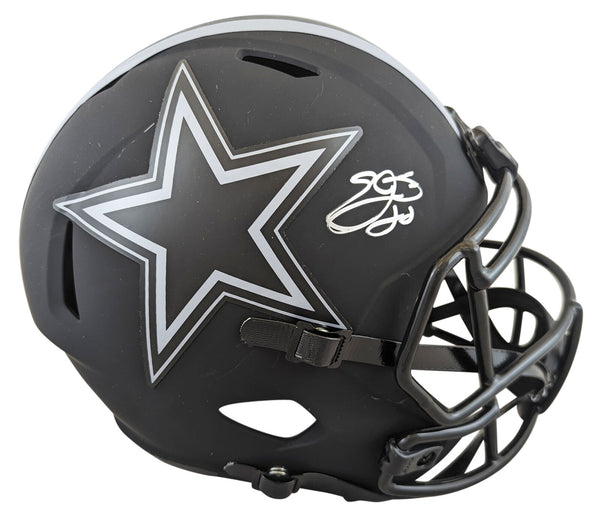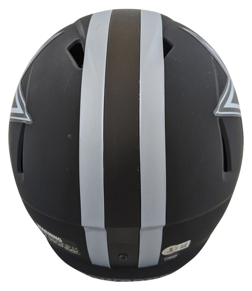 This Autographed Alternate Eclipse Riddell Full Size Speed Rep Helmet has been Personally Signed by Emmitt Smith of the Dallas Cowboys. This item is 100% Authentic to include a hologram by Beckett Authentication Services. This item will come with an affixed Beckett Authentication Services (BAS) authentication sticker, which includes a scannable QR code to verify authenticity. Please note that Beckett no longer provides serial-numbered COA cards, and the attached BAS sticker will serve as the complete authentication for this item. This is a BAS Witnessed Protection Program item which means a Beckett Authentication Service representative was present when this item was being signed. We conducted an autograph signing with Emmitt Smith where multiples of the same item were signed. While the photographs are representative of this item, the size, placement and strength of the signature may vary. Each item is hand signed, therefore, each autograph is unique. This item can be verified through BAS Witnessed.