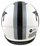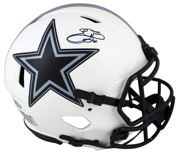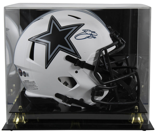 This Autographed Alternate Lunar Riddell Full Size Speed Proline Helmet W/ Uv Mirrored Back Acrylic Display Case has been Personally Signed by Emmitt Smith of the Dallas Cowboys. This item is 100% Authentic to include a hologram by Beckett Authentication Services. This item will come with the new Beckett Authentication hologram that has a scannable QR code rather than the traditional COA. If you would like to have a COA, you are welcome to reach out to Beckett for a printed certification once you receive your item. This is a BAS Witnessed Protection Program item which means a Beckett Authentication Service representative was present when this item was being signed. We conducted an autograph signing with Emmitt Smith where multiples of the same item were signed. While the photographs are representative of this item, the size, placement and strength of the signature may vary. Each item is hand signed, therefore, each autograph is unique. This item can be verified through BAS Witnessed.