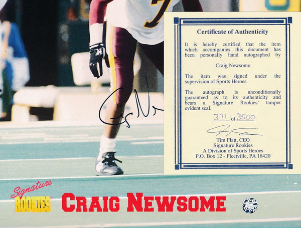 Craig Newsome Autographed Signature Rookies 371 of 3500 8x10 Photo Arizona State. This photo is authenticated by Signature Rookies and includes their Tamper-proof Sticker and Certificate of Authenticity.