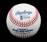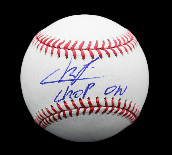 An Atlanta Braves Rawlings Official Major League MLB Baseball hand signed by Cristian Pache. The item and signature are in excellent condition. In addition to signing his name, Cristian also inscribed "Chop On" on the item. Cristian is a baseball outfielder for the Braves. He was called up to the major league level in 2020. His first major league hit was a single. AUTHENTICATION: The item features a Beckett Certificate of Authenticity - Beckett Serial Numbered and Databased Hologram