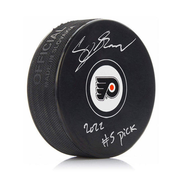 Cutter Gauthier Philadelphia Flyers Autographed NHL Hockey Logo Puck with #5 Pick Inscription Official NHL logo puck with signature from Flyers star Cutter Gauthier - authenticated by Dynasty Sports This officially licensed Philadelphia Flyers NHL logo puck has been hand-signed by Philadelphia Flyers star Cutter Gauthier. It has been authenticated by Dynasty Sports during a public autograph event. Hand-Signed by Philadelphia Flyers star Cutter Gauthier Signature is bold and clear on the puck Includes #5 Pick Inscription! Official NHL Flyers logo puck Authenticated by Dynasty Sports with serially-numbered hologram Click here to purchase this puck with the autograph only Customization options available - contact our storefront for information regarding customizing this in the frame and matting colors of your choice! Please allow additional time for framing and shipping