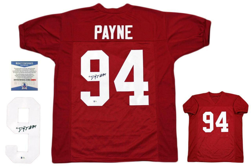 This signed item is new without tags or logos. This jersey is custom sewn in a size 52 (XL). All the letters and numbers are sewn on! This item will make a great gift or a great addition to any collection at an AFFORDABLE PRICE! ATHLETE: Da'ron Payne ITEM: Custom Sewn Jersey AUTHENTICATION: This item comes with a Beckett Authentication Services (BAS) Witnessed Certificate of Authenticity and serial #'ed hologram affixed to the item. To ensure authenticity, the hologram can be reviewed online. This process helps to ensure that the product purchased is authentic and eliminates any possibility of duplication or fraud. This item was signed in the presence of a Beckett representative. NOTE: All of our autographed jerseys are custom jerseys, unless otherwise noted. Our custom jerseys are NON-BRANDED, have NO logos, NO tags, NO patches, NO emblems. All letters and numbers are SEWN-ON. The non-branded jerseys are made specifically for the player(s) to sign, for collectible purposes.