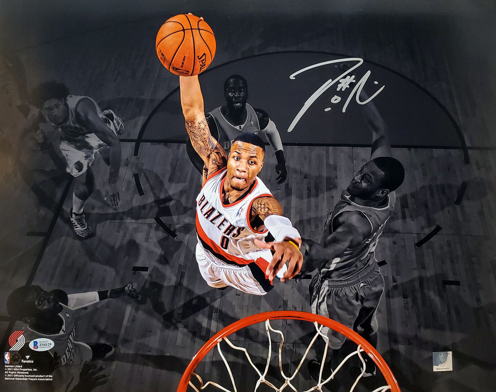 This is a 16x20 Photo that has been hand signed by Damian Lillard. It has been certified authentic by Beckett Authentication (BAS) and comes with their sticker and matching certificate of authenticity.