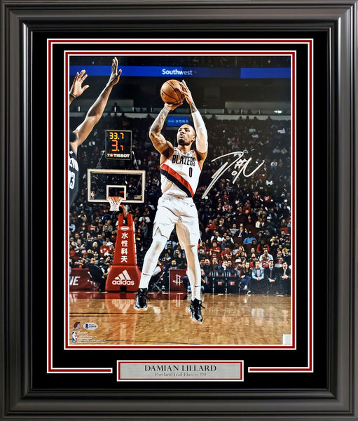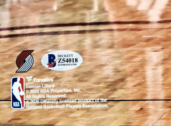 This is a Framed 16x20 Photo, approximately 24x28 with the frame, that has been hand signed by Damian Lillard. This item has been certified authentic by Beckett Authentication (BAS) and comes with their tamper-proof sticker. Beckett Authentication has recently changed their physical certificate card policy where they no longer match their tamper-proof sticker with a physical certificate. If the item features a Beckett Authenticated QR Code, the item does NOT come with a matching certificate. A certificate can be printed on Beckett's website for the matching authentication number.
