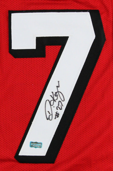 An Atlanta Custom Red Jersey Hand Signed by Damontae Kazee. The item and signature are in excellent condition. Damontae is a safety for the Atlanta Falcons. He played college football at San Diego State before being drafted by the Falcons in the 2017 NFL draft. In 2018 he was an NFL Interception co-leader. AUTHENTICATION: The item is accompanied by a Certificate of Authenticity - Serial Numbered and Databased Hologram - Picture of Damontae from the Signing