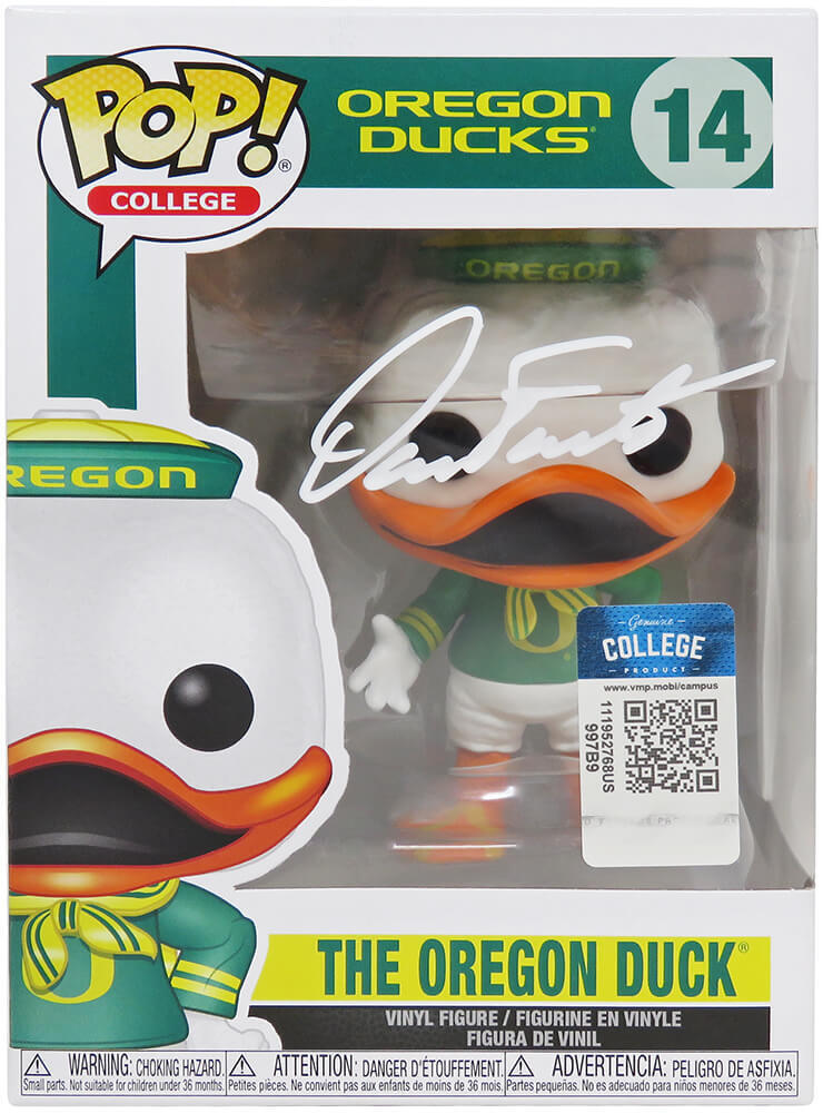 Dan Fouts signed Oregon Ducks NCAA mascot Funko Pop doll #14. Item comes with a Schwartz Sports Memorabilia tamper-proof numbered hologram and Certificate of Authenticity which can be verified online.