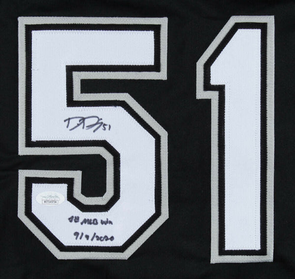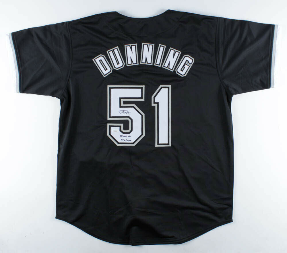 Custom on-field style jersey. Everything is sewn on, size XL. Hand-signed in silver paint pen by Dane Dunning. The autograph includes an official James Spence Authentication (JSA) hologram and matching COA for authenticity purposes. The signing of this item was witnessed by JSA.Authentication: JSA COA