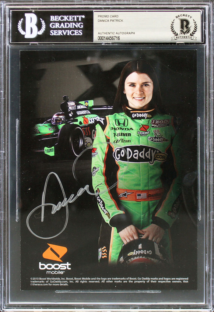 This Autographed 5x7 Promotional Card Photo has been Personally Signed by Danica Patrick. This item is 100% Authentic, it comes slabbed and authenticated by Beckett Authentication Services. The authenticity can be verified on Beckett Authentication Services website.