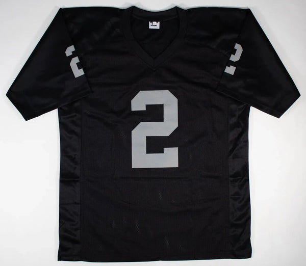 This autographed custom on-field style adult XL jersey has been personally hand-signed by Daniel Carlson of the Las Vegas Raiders. This autograph is certified by Beckett Authentication Services (BAS) Witness Certification. That means that a Beckett representative was present when this item was signed. It comes with the numbered authentication hologram with a QR code card that verifies the authentication on the Beckett website.Custom on-field style jerseys are a more affordable option for autograph seekers. These jerseys do not have any brand name or tags and are made in the Philippines. They feature stitched on names and numbers and are made to look very similar to the on-field jerseys that the players wear. These custom jerseys are very commonly used in the memorabilia industry.