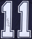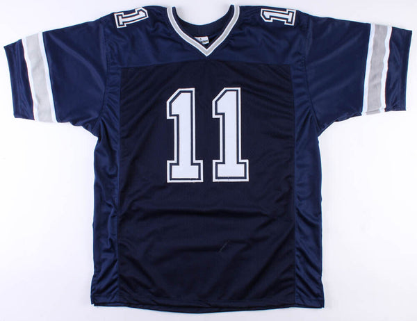 Custom on-field style jersey. Everything sewn on, size XL. Hand-signed in black felt-tip pen by Danny White. The lot / autograph(s) includes an official James Spence Authentication (JSA) hologram and matching COA for authenticity purposes.Authentication: JSA COA