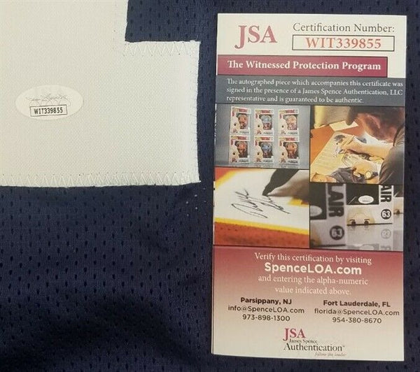 Custom on-field style jersey. Everything sewn on, size XL. Hand-signed in black felt-tip pen by Danny White. The lot / autograph(s) includes an official James Spence Authentication (JSA) hologram and matching COA for authenticity purposes.Authentication: JSA COA