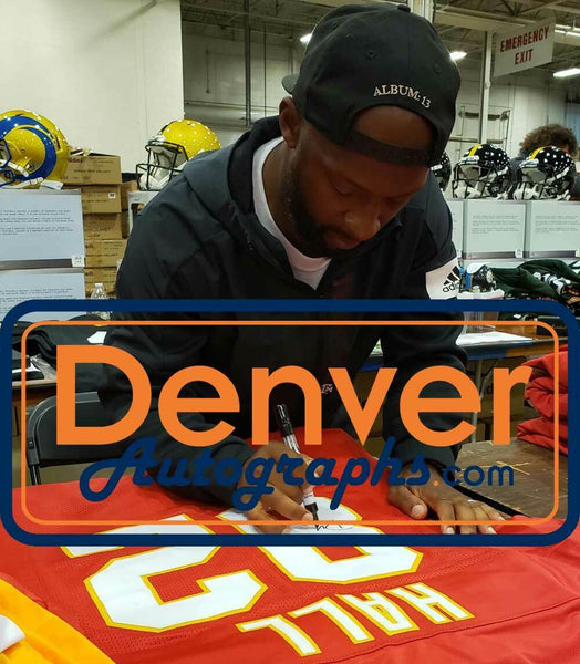 Dante Hall Autographed/Signed Pro Style Red XL Jersey Beckett 35510 The number in the listing title is just an inventory sku for our records and is not the authentication number. The item pictured is a stock photo unless otherwise noted. This is a custom pro style red XL jersey with sewn on name and numbers that was personally autographed by Dante Hall. Includes a certificate of authenticity from Beckett Authentication Services (BAS) and Denver Autographs.