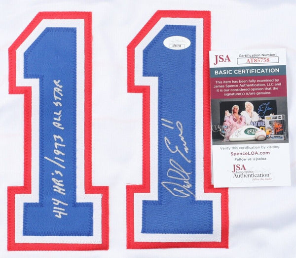 Custom on-field style jersey. Everything sewn on, size XL. Hand-signed and inscribed by Darrell Evans.The autograph(s) includes an official James Spence Authentication (JSA) hologram and matching COA for authenticity purposes.Authentication: JSA COA