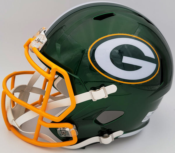 This is a Green Bay Packers Flash Green Full Size Replica Speed Helmet that has been hand signed by Davante Adams. The Flash helmets are very delicate and often have some marks or scratches on them. This item has been certified authentic by Beckett Authentication (BAS) and comes with their tamper-proof QR Code sticker that can be verified on the Beckett-authentication.com.