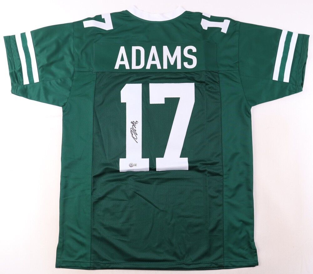 Custom on-field style jersey. Everything is sewn on, size XL. Hand-signed by Davante Adams.The autograph includes an official Beckett Authentication Services serially numbered hologram and QR Code card for authenticity purposes. The signing of this item was witnessed by Beckett.Authentication: Beckett Hologram with QR Code cardCustom on-field style jerseys are a more affordable option for autograph seekers. These jerseys do not have any brand name or tags and are made in the Philippines. They feature stitched on names and numbers and are made to look very similar to the on-field jerseys that the players wear. These custom jerseys are very commonly used in the memorabilia industry.