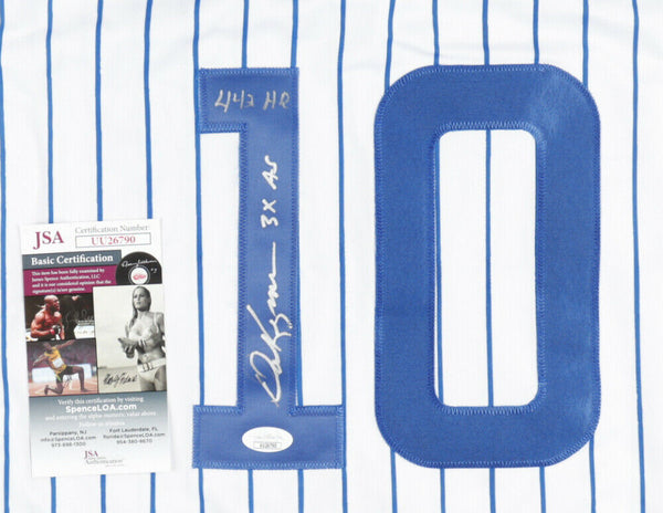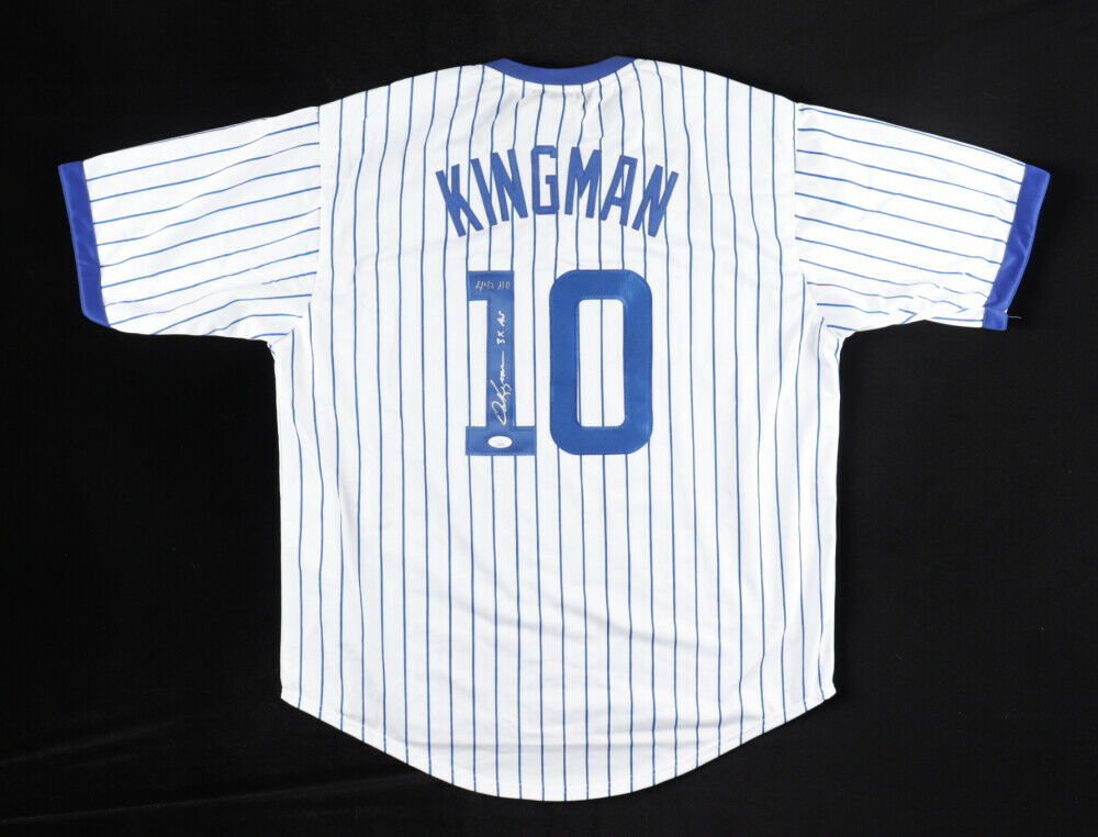 Custom on-field style jersey. Everything sewn on, size XL. Hand-signed in silver paint pen by Dave Kingman. The lot / autograph(s) includes an official James Spence Authentication (JSA) hologram and matching COA for authenticity purposes. Authentication: JSA COA