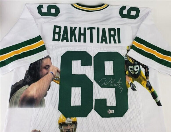 This autographed jersey has been personally hand-signed by David Bakhtiari of the Green Bay Packers. This autograph is certified by Beckett Authentication Services (BAS) Witness Certification. That means that a Beckett representative was present when this item was signed. It comes with the numbered authentication hologram with a QR code that verifies the authentication on the Beckett website.Custom on-field style jerseys are a more affordable option for autograph seekers. These jerseys do not have any brand name or tags and are made in the Philippines. They feature stitched on names and numbers and are made to look very similar to the on-field jerseys that the players wear. These custom jerseys are very commonly used in the memorabilia industry.