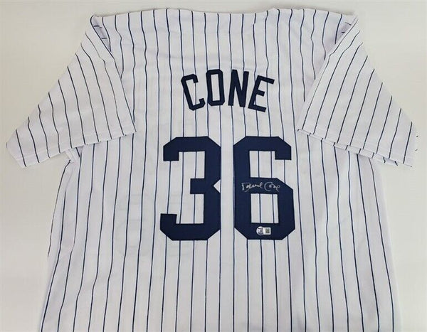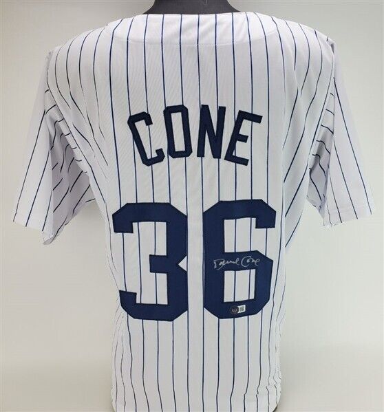 This autographed jersey has been personally hand-signed by David Cone of the New York Yankees. This autograph is certified by Beckett Authentication Services (BAS) Witness Certification. That means that a Beckett representative was present when this item was signed. It comes with the numbered authentication hologram with a QR code that verifies the authentication on the Beckett website.Custom on-field style jerseys are a more affordable option for autograph seekers. These jerseys do not have any brand name or tags and are made in the Philippines. They feature stitched on names and numbers and are made to look very similar to the on-field jerseys that the players wear. These custom jerseys are very commonly used in the memorabilia industry.