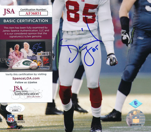 David Tyree Signed/Autographed 8x10 Photo New York Giants. This Photo is authenticated by JSA and includes their tamper proof sticker and Certificate of Authenticity