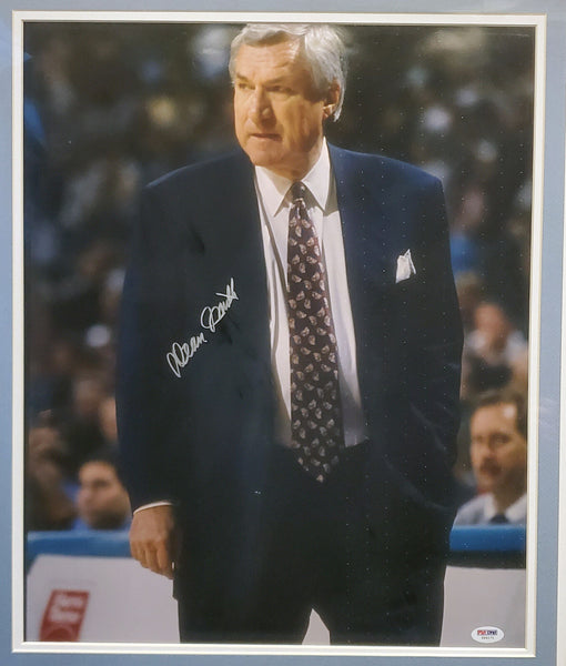 This is a framed 16x20 Photo, approximately 24x28 with the frame, that has been hand signed by Dean Smith. It has been certified authentic by PSA/DNA and comes with their sticker and matching certificate of authenticity.
