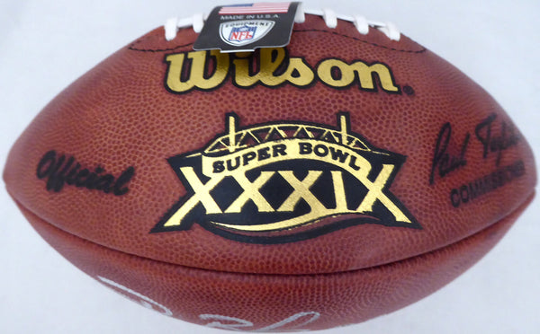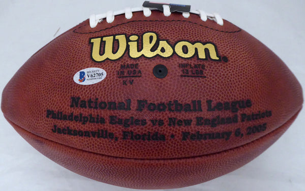 This is an Official NFL Leather Super Bowl XXXIX Football that has been hand signed by Deion Branch. This item has been certified authentic by Beckett (BAS) and comes with their sticker and matching certificate of authenticity.