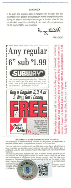 Deion Sanders Signed Cincinnati Reds 5/1/1997 vs Braves Ticket BAS 37200 The number in the listing title is just an inventory sku for our records and is not the authentication number. The item pictured is a stock photo unless otherwise noted. This is a authentic ticket stub that was personally autographed by Deion Sanders. Includes a certificate of authenticity from Beckett Authentication Services (BAS) and Denver Autographs.